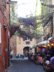 The arquitecture is charming: medieval houses with the original facade, in light and neutral colors, some of which have climbing plants on the walls, trees and flowers; in many corners there are still images of the Madonna or the Virgen Mary, that have been there since the time when Rome was owned by the Vatican;it is a trafic limited zone during the the night, so if you’re coming with a car,you better inform yourself about the forbidden hours because if you break the rule, no matter from where you’re coming from, you’ll receive a fine afterwards!.