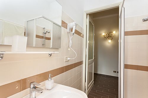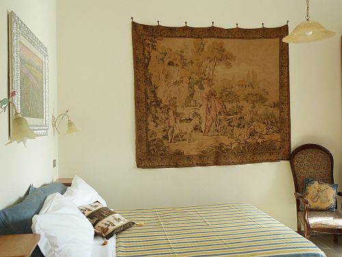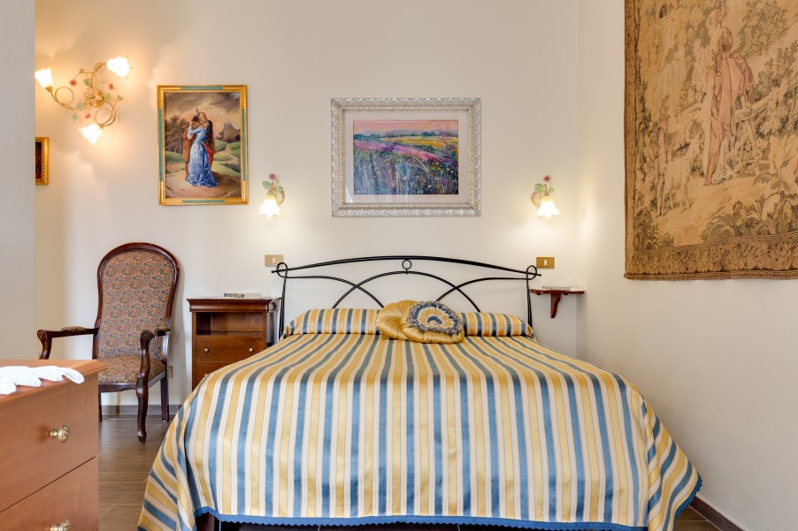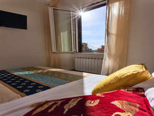 L'appartamento è ampio e soleggiato, ha alti soffitti e offre una veduta su uno scorcio di Castel Sant'Angelo. Dispone di due camere matrimoniali (di cui una con letto alla francese), entrambe silenziose, confortevoli e dotate di TV, climatizzatore (caldo/freddo) e bagno privato en suite provvisto di doccia e asciugacapelli. Tutte le stanze hanno finestre con doppi vetri.