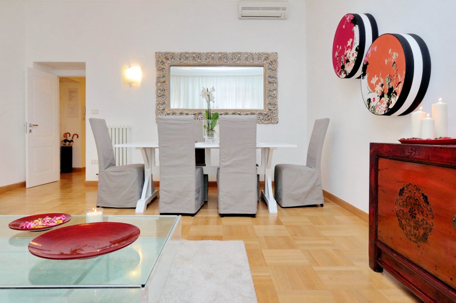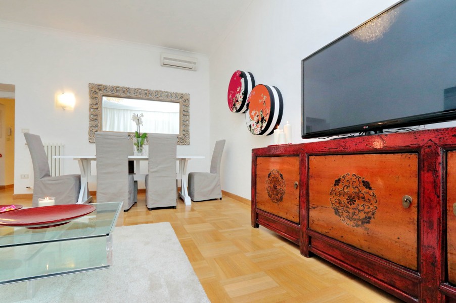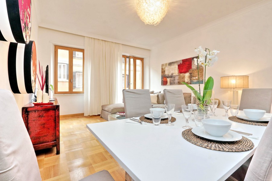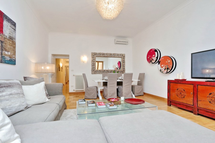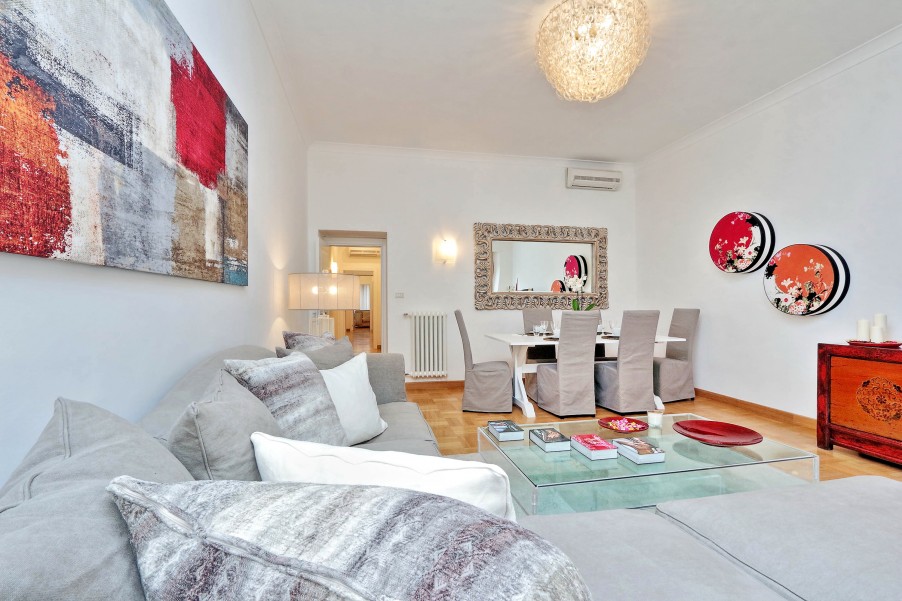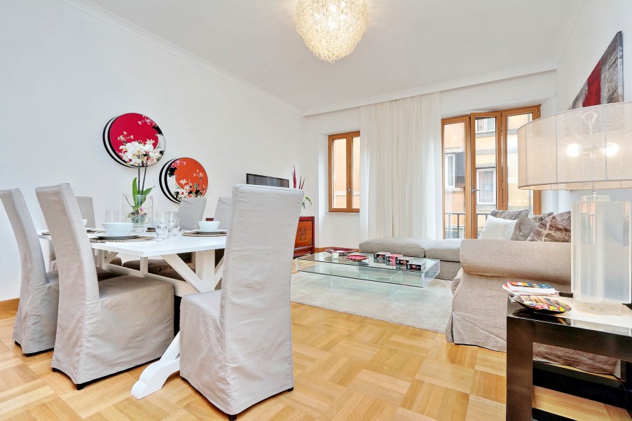 Bellissimo appartamento di 130 mq al secondo piano di una palazzina signorile con ascensore situata nel cuore dell'area pedonale del "Tridente Romano", a due passi da Piazza del Popolo e Piazza di Spagna e ottimamente collegato con varie fermate della metro e degli autobus. La casa è stata recentemente ristrutturato ed elegantemente arredato. Presenta un suggestivo affaccio verso Piazza del Popolo ed è dotato di ogni confort (aria condizionata in tutte le stanze, Wi-Fi gratuito, riscaldamento, ferro e asse da stiro, TV, lettore DVD, hi-fi). è composta da: