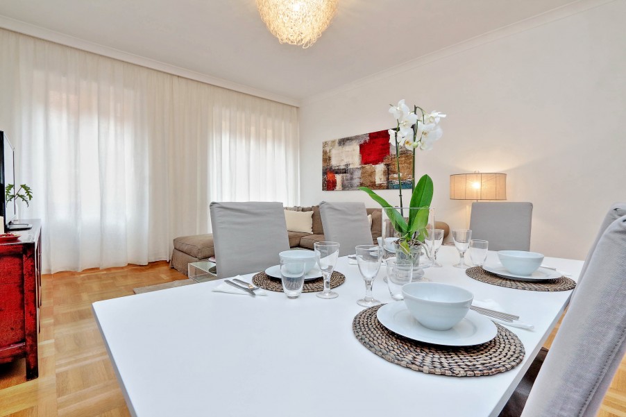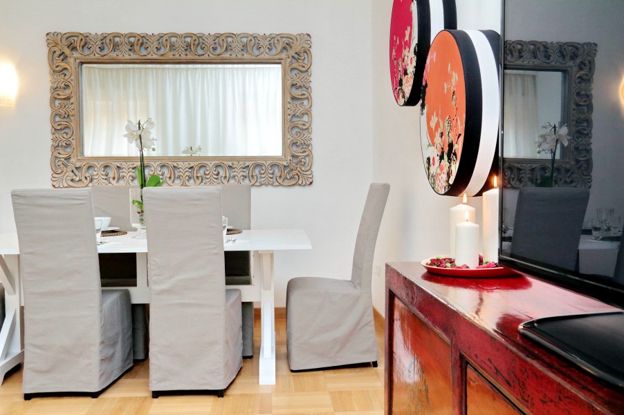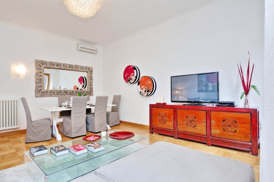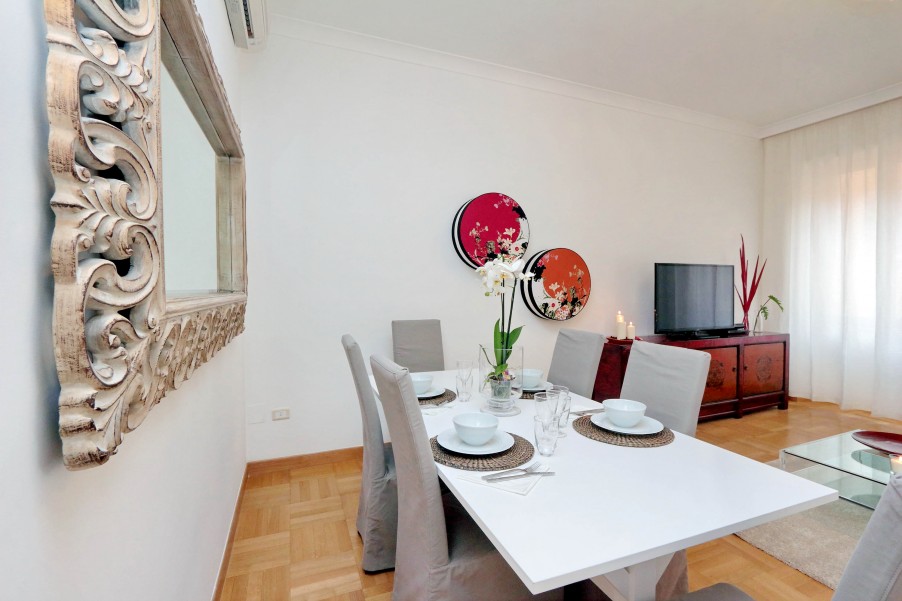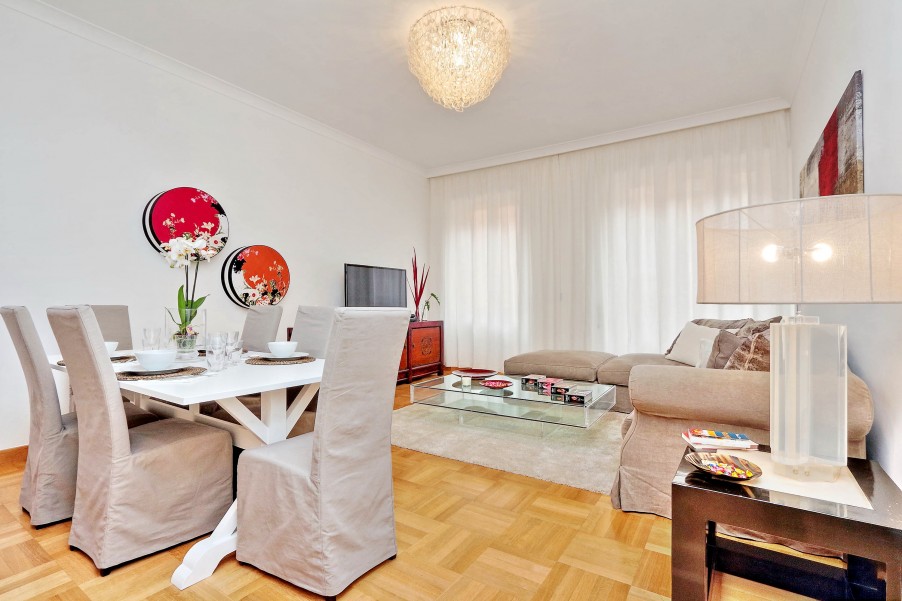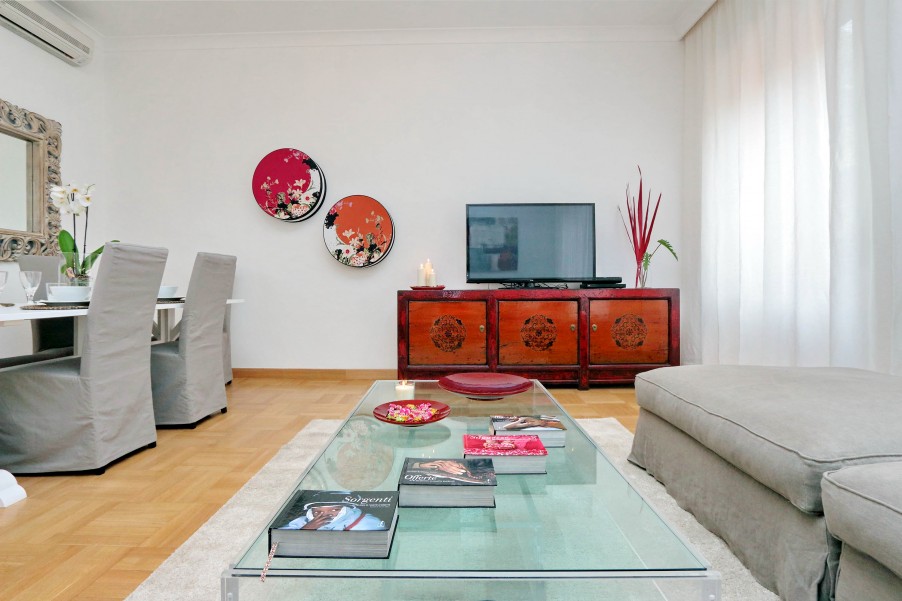Bellissimo appartamento di 130 mq al secondo piano di una palazzina signorile con ascensore situata nel cuore dell'area pedonale del "Tridente Romano", a due passi da Piazza del Popolo e Piazza di Spagna e ottimamente collegato con varie fermate della metro e degli autobus. La casa è stata recentemente ristrutturato ed elegantemente arredato. Presenta un suggestivo affaccio verso Piazza del Popolo ed è dotato di ogni confort (aria condizionata in tutte le stanze, Wi-Fi gratuito, riscaldamento, ferro e asse da stiro, TV, lettore DVD, hi-fi). è composta da: