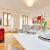 - 1 cucina con lavello, 4 fuochi a gas, forno, frigorifero, microonde, lavatrice, lavastoviglie, tostapane, bollitore, pentole ed altri utensili da cucina.